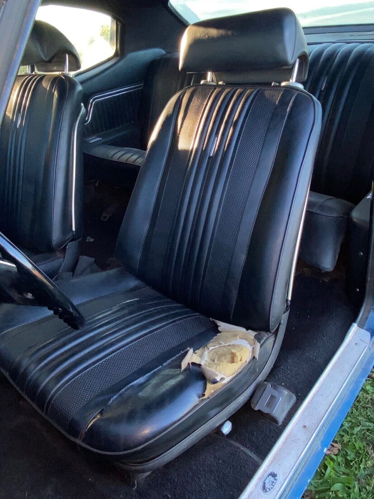 As you might expect, the blue paint is ready for a do-over and there is some rust in the sheet metal, mostly in the lower extremities. Inside the passenger compartment, things look better with only the driver’s bucket seat jumping out as being worn. This Chevelle came with an AM radio and an 8-track tape player, but that was replaced at some point. The indicated mileage is 28,735 and my intuition tells me this could be legit. The seller has the car’s original title and complete (but tattered) built sheet which is needed to identify a real-deal SS.