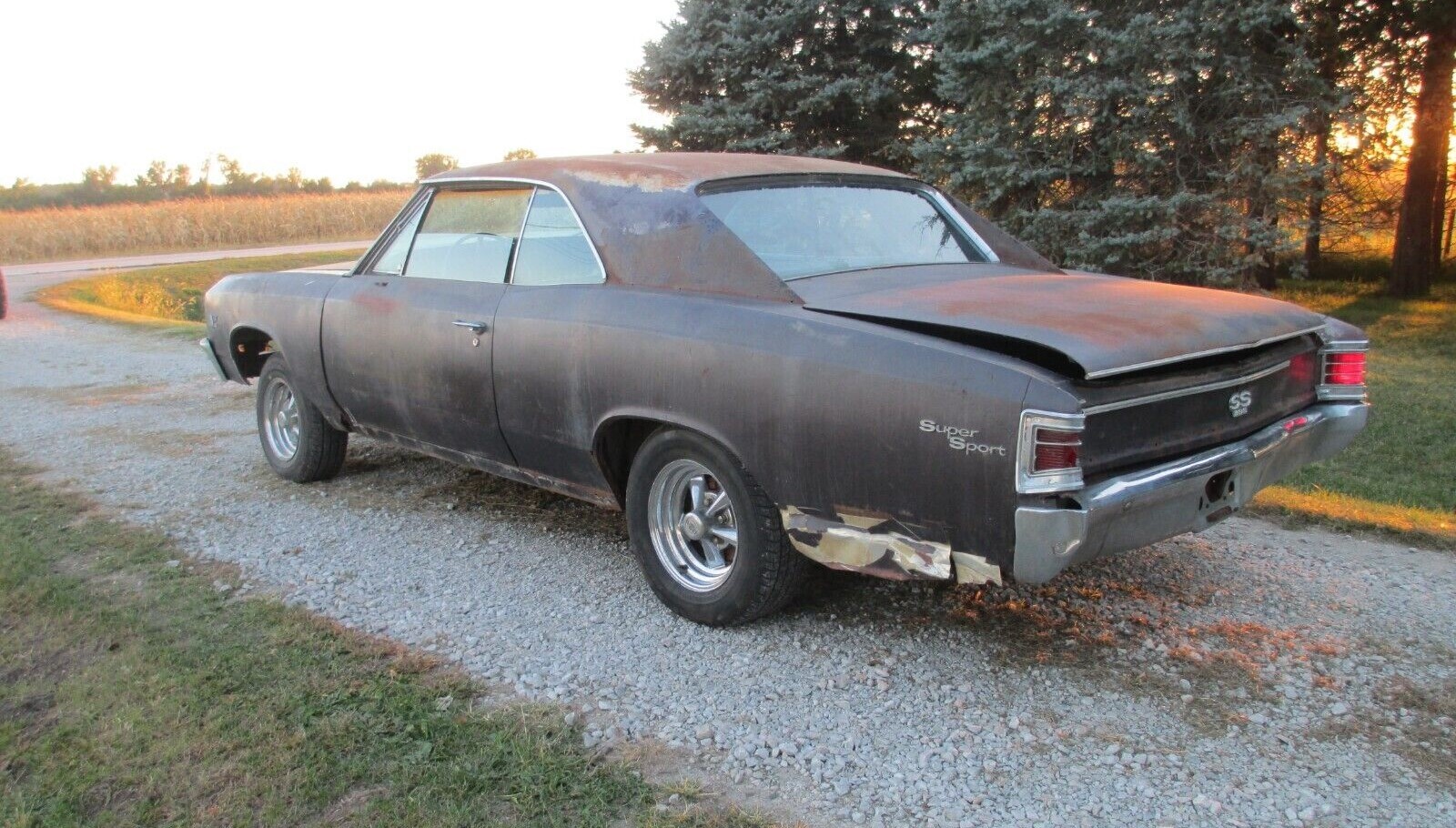 I don’t want to put the car down, but at $7,900 I have to speak up, I have been blessed in my time as far as it is the mid to late seventies, these cars, ’55-’70 Muscle”, were a dime a dozen, maybe it was dumb luck, whatever, I bought my first car, ’66 SS396 Chevelle, for $250 with 55 miles on it, it was sitting in a friends neighbors yard, the owner sadly was killed in Vietnam, it had weeds growing up through the floorboards, 4 flats, Engine was frozen, pulled plugs, oz tranny fluid in each cylinder, new plugs, she fired right up, allotof tranny fluid smoke, Factory 350hp, M-21, 4.10 Dana, I traded it for a 69 SS396 that was painted using white house paint, carpet was a Light Blue shag lol, I took her apart, WHAT, Aluminum Rectangular Intake’s, 4-bolt mains, 11.5 compression, factory hi-rise Al intake manifold, I added my favorite Shifter, Hurst Short Throw Super-Shifter, checked the #’s and it turned out be an L-79, 375hp, M-22 Rock Crusher, $.10 Dana, huge front disc brakes, at 375hp, my baby came stock with a Quadrajet spread bore, I hated it, bought a brand new 750 Holley Double-Pumper, OMG, 50 more HP at least.