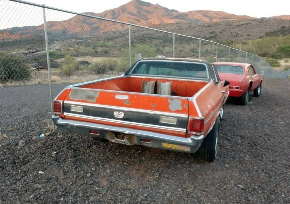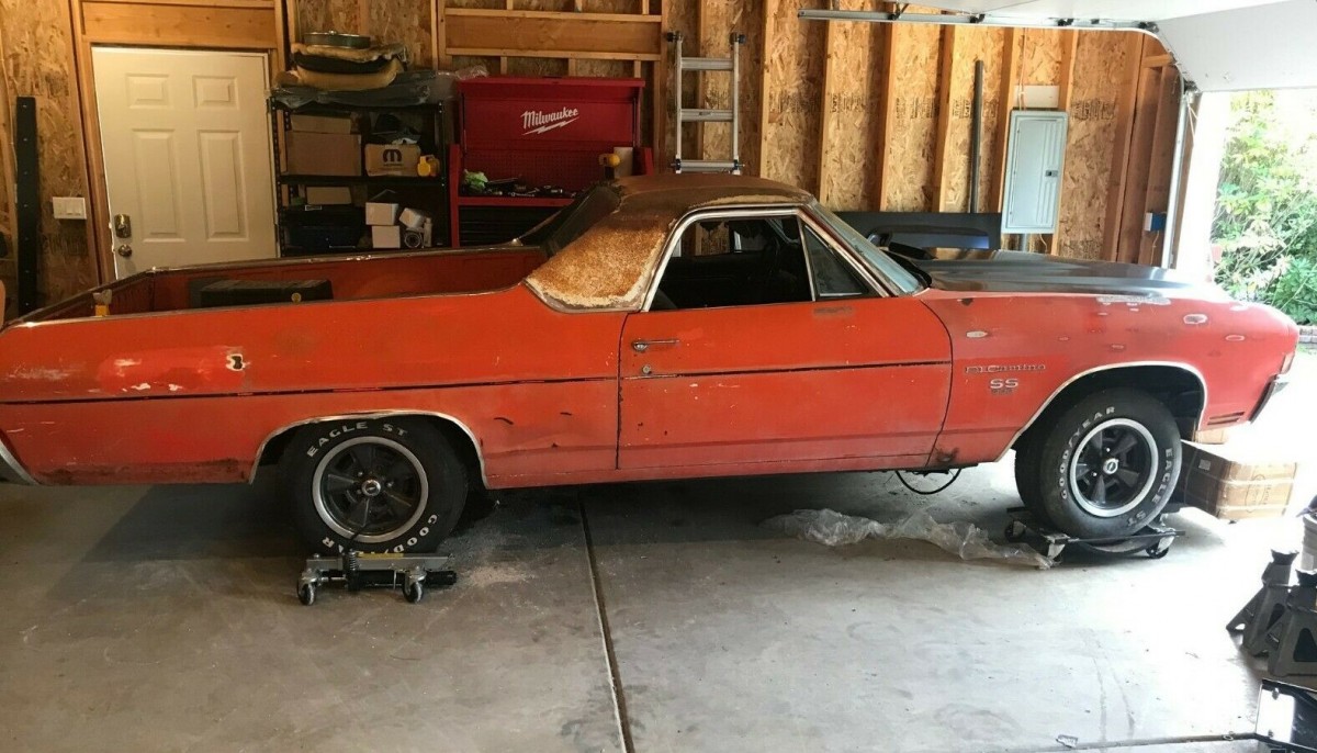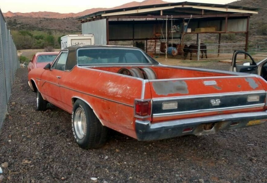 If an El Camino left the factory with a SS 396 set-up, the engine displacement was 402 cubic inches. The 396/402 was offered in 350 hp (L34) and 375 hp (L78) varieties. Though the motor is gone from the seller’s pickup, its TH-400 automatic transmission remains. Since the mileage is unknown, there is no idea how worn out the overall truck is which looks as though it once stayed busy.