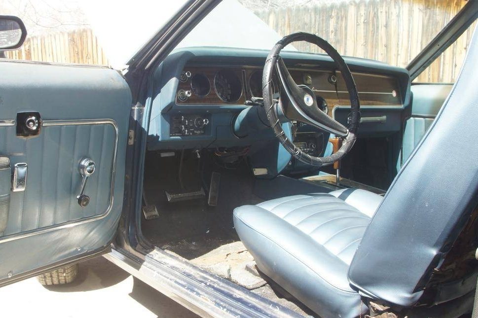 The interior of the Javelin is also a bit of a pleasant surprise. The car came from the factory fitted with an AM/FM radio, and air conditioning. The dash looks good, as does the floor console and seats. The door trims look like they need a bit of re-stretching and securing in the corners. The carpet will probably need replacing, and there are a few minor trim pieces missing, but the overall impression is very positive.