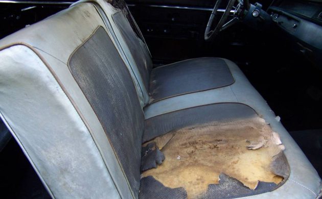 Other items noted by the seller include a driver’s door that needs a latch, non-working brakes, and window mechanisms that need TLC. The car will not be sold with the mag wheels and tires shown in the ad photos. Instead, it will come with steel wheels and tires that are not pictured. It will roll and can be winched onto a trailer for transport.