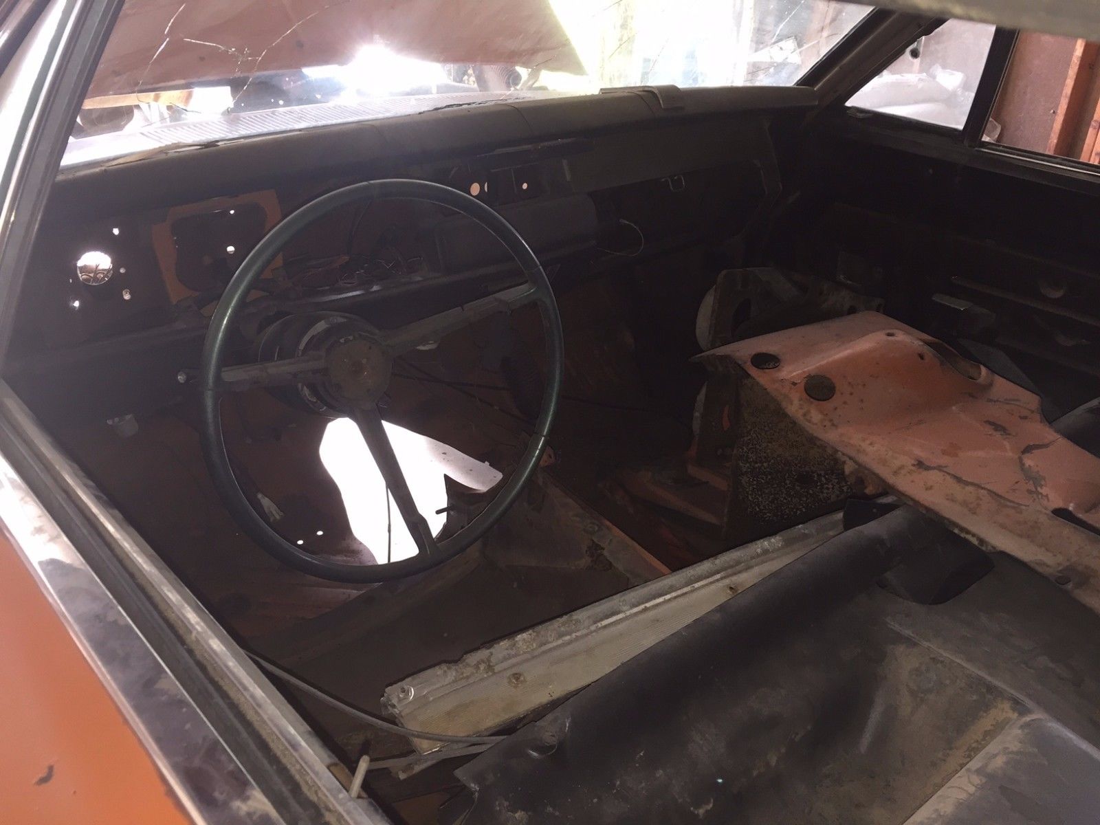 According to the seller, this car was purchased from someone who disassembled it in the hopes of restoring it but changed their mind. The floor pans are in decent condition and won’t need to be completely replaced but some small patches will probably be required. At some point someone started to convert this car to a 4-speed, but did not complete it. This was originally a 727 automatic Thus, the center console and automatic shifter are missing. The original dash cluster and heater box have been removed but are included with the car. Nothing is said of any of the other parts, but aside from the things pictured and mentioned it can be assumed that anything else is missing.