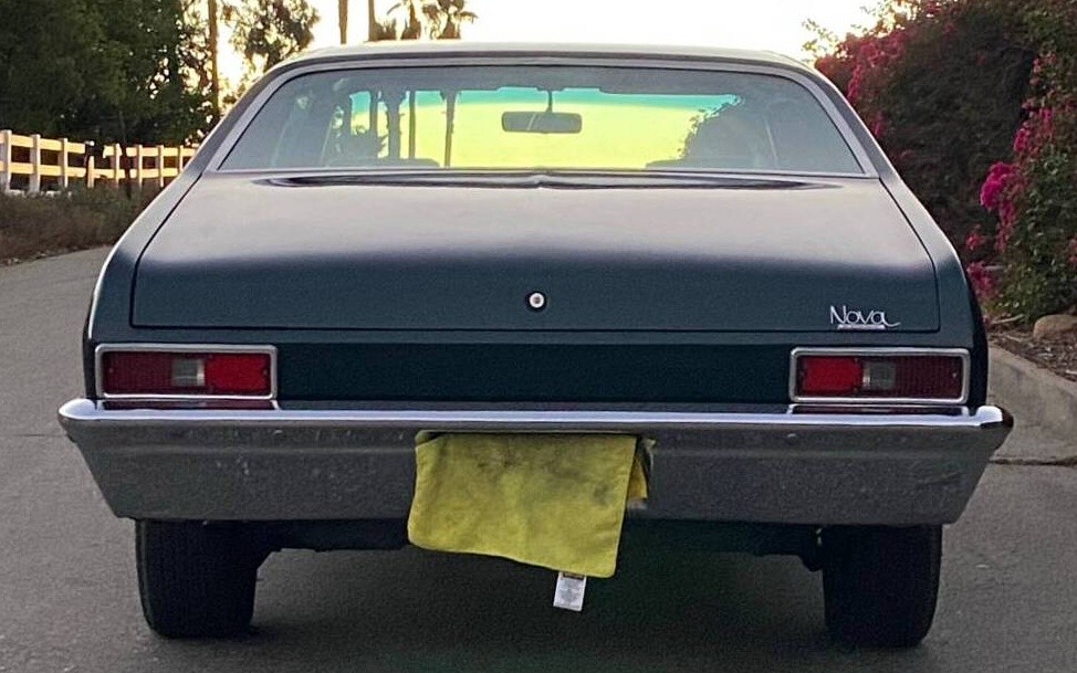 I owned a Cottonwood Green ’71 Nova SS back in ’76, it had the rear SS black out trim panel also it had the faux l & R hood louvers. I think this would have the original hood with louvers if a real SS. What we have here IMO is a wanna be clone that never had all the goodies added. Always liked these early ’70s Nova’s and would like to have my ’71 back today, such a fun 4 speed tire frier.
