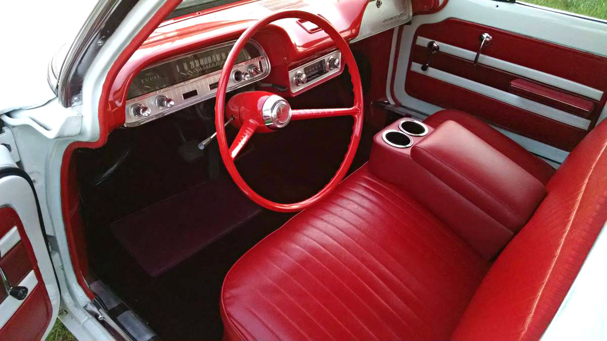 Crisp and clean, the interior is like a dream. The seller had the interior “restored” and it looks fantastic. An aftermarket center console has been added, but appears temporary and easily removed. Glossy as if is still wet with fresh paint, the dash is phenomenal. The gauge cluster is clear without a cloudy appearance, or cracking. All new carpet is fitted to the interior all the way back to the cargo area. The only thing that is a bit off inside, is the rear carpet for the cargo space. The hue is off, clashing with the rest of the interiors “lipstick” red coloring. I would simply replace that carpet with a more appropriate hue, and call it a day.