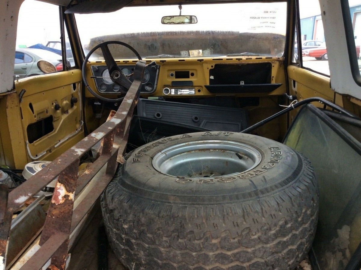 The fact that it still has a solid-looking bed floor surprised me a little. Perhaps this seller’s definition of rust is more like my own as opposed to the “if you can’t see through it, it’s not rusty” attitude of some eBay sellers. This is one of 44,266 K5 4WD Blazers produced in 1972 according to 67-72chevytrucks.com.