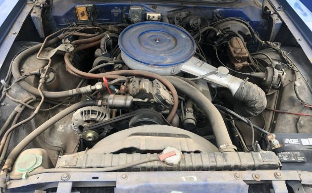 The listing for this car states almost nothing, so the images have to do the talking. The Cadet Blue finish is in fine condition, maintaining depth and showing no indication of fade. Rust appears to be nowhere in sight, and the chrome bits still shine with a decent luster. Additionally, all of the stainless and aluminum trim is still in place, and the white vinyl top covering appears to be clean and not in the process of separating from the underlying roof.