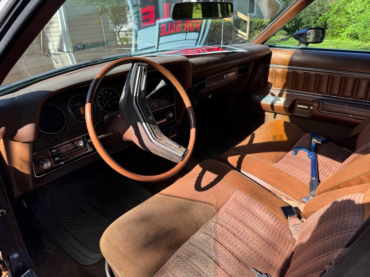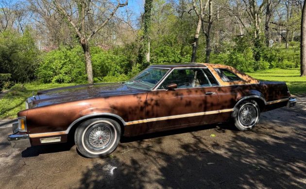 Despite all the changes, the XR-7 edition sold well in ’78 with 166K finding first-time garages. The GM mid-sizers were downsized for ’78, but intermediates, such as this Cougar, were still popular – ostensibly because of their size. In keeping with mid-size traditions, Cougar, starting with the fourth-gen (’77-’79), was also available as a four-door sedan. Riding on a 114″ wheelbase and stretching out at 215.5″ in overall length, these intermediate Mercs packed on the pounds, tipping the scales at 4,200 lbs. On the surface, this car shows pretty well in an all-so-seventies way with its landau top, opera windows, stand-up hood ornament, wire wheelcovers, and of course, its brown finish. As the listing states, the vinyl top is shredding, and something is going on underneath it at the left side C-pillar. Still, the entire package is presentable, especially considering that it’s 47 years young and has experienced 108K miles of use.
