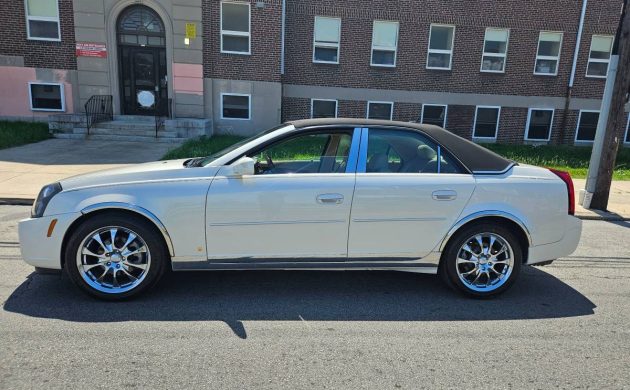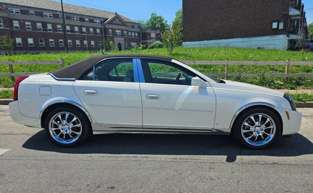 Around 2010, I bought a used 2004 CTS that was owned by an older guy, who was officially retired from driving. Maybe 25,000 miles, didn’t look like anyone ever sat in the back seat. The best part was that he had it fitted out like an old guy’s car – whitewalls, some fancy pinstriping, one of those flip-down smoked plastic visor attachments, and a few other things.