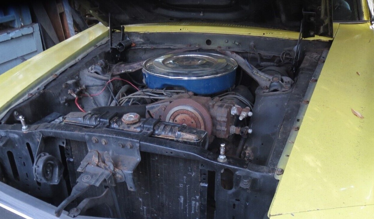 The seller has tested the motor and says it’s in good running order with no strange noises or smoke. The interior appears to be in order except for the front seats which are GT-style and transplanted from a later vintage automobile. The listing party has been dealing in Ford muscle cars for more than 40 years and is beginning to thin the herd. So, it sounds like he/she knows what they are talking about, and could probably address any questions a prospective buyer may have.