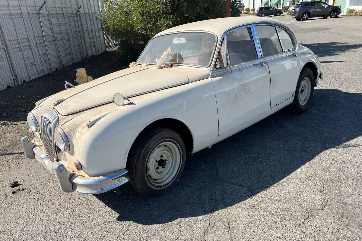 The Daimler 250, technically known as the Daimler 2.5 V8 or V8-250, was produced in England and is largely a Jaguar Mk II but with a V8 engine rather than an inline-6. The car was based on the same platform as the Mk II and was the first Daimler to use unit-body construction. This example from 1965 has right-hand drive which suggests it was not built for U.S. consumption. The body appears to be in good shape, but no mention is made as to whether it runs. Located in San Luis Obispo, this interesting project is available here on craigslist for $5,000. Thanks for turning us on to this interesting vehicle, Joe Anastasio!
