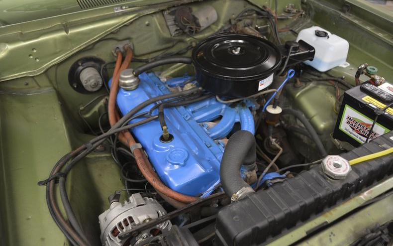 This beauty is the famous 225 slant-six which would have had 110 hp. I believe 1970 is when Mopar went to a blue 225 slant-six rather than a red/orange one. I’m so used to seeing orange slant-sixes that I can’t get used to the blue ones, but this one looks great. Maybe freshly touched-up but it looks clean and the seller has provided a ton of great photos of this car. Have any of you owned a Plymouth Scamp or Dodge Swinger?