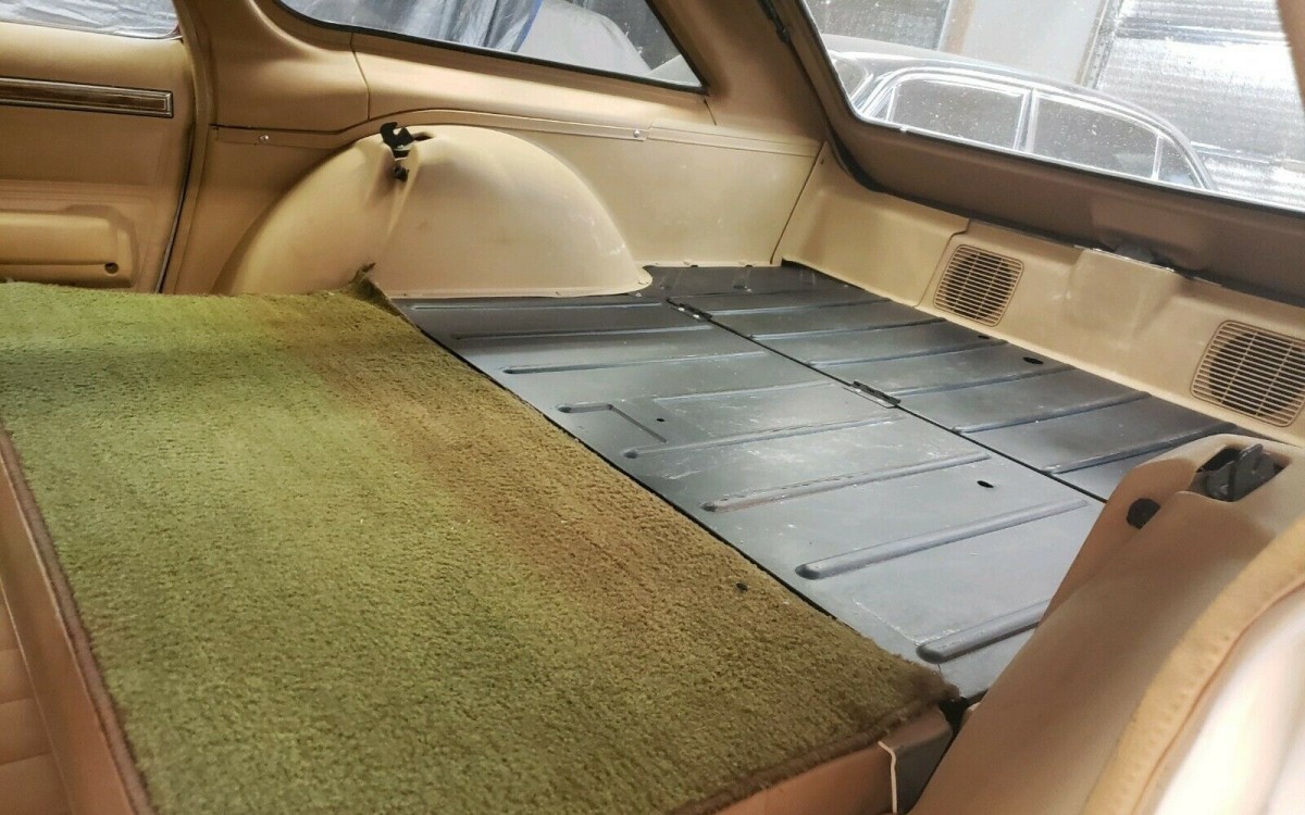 The seller says that the paint has a blemish or two in it, but inside things look to be overall nicely preserved. The tan interior seems to be in good shape, with both the front and rear seats looking clean and showing little wear. The sun visors have been re-covered and there’s a new headliner up above. The car had 62,000 miles when the current owner purchased it two years ago, and it now has 64,000 miles.