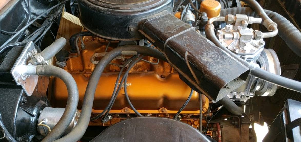 Under the hood doesn’t disappoint. Here we see the 343ci 2-barrel. The owner has had the engine out and replaced all of the seals. If the claimed mileage is correct and the car has been sitting, then this is a sensible move. Your eyes aren’t deceiving you. This one also features power steering and air con. The car also features new drum brakes, lines and a new brake master cylinder. The fuel tank has also been out and cleaned and checked for leaks. However, with all of this work done by the seller, one thing not done is that the transmission is not installed. However, the seller will install it for an additional $250. The seller also indicates that the car requires a new exhaust from headers to muffler.