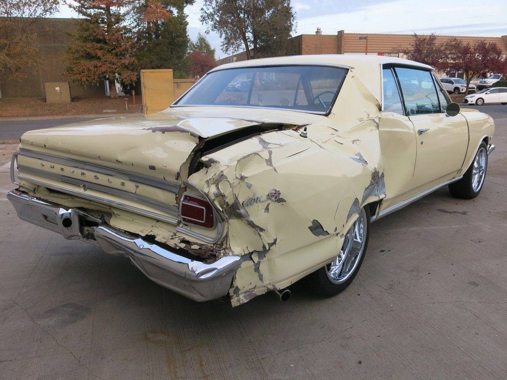 This 1965 Chevelle Malibu SS looks like it was a pinball in a giant pinball machine. Whatever kind of accident it was in, the car has been damaged in all four corners, some points worse than others. This is a shame because it looks like a beautiful machine before misfortune came into its life. Located in Rancho Cordova, California, this Chevy is available with a salvage title here on eBay for the Buy It Now price of $9,900. Serious offers will also be considered by the dealer selling the car. Thanks, Larry D, for finding this tip for us!