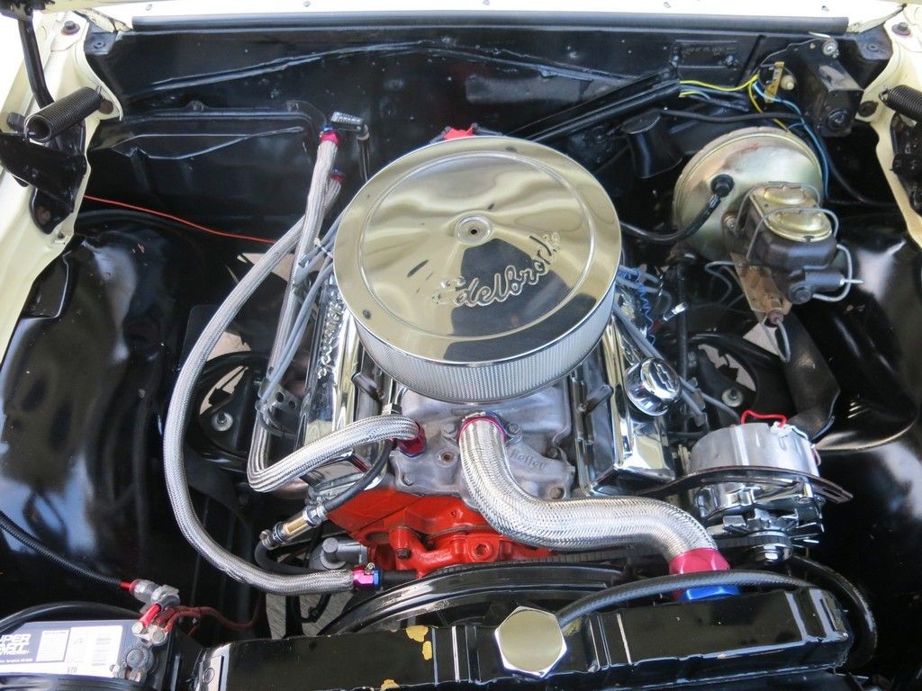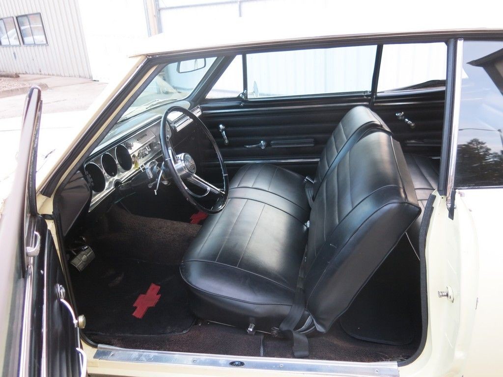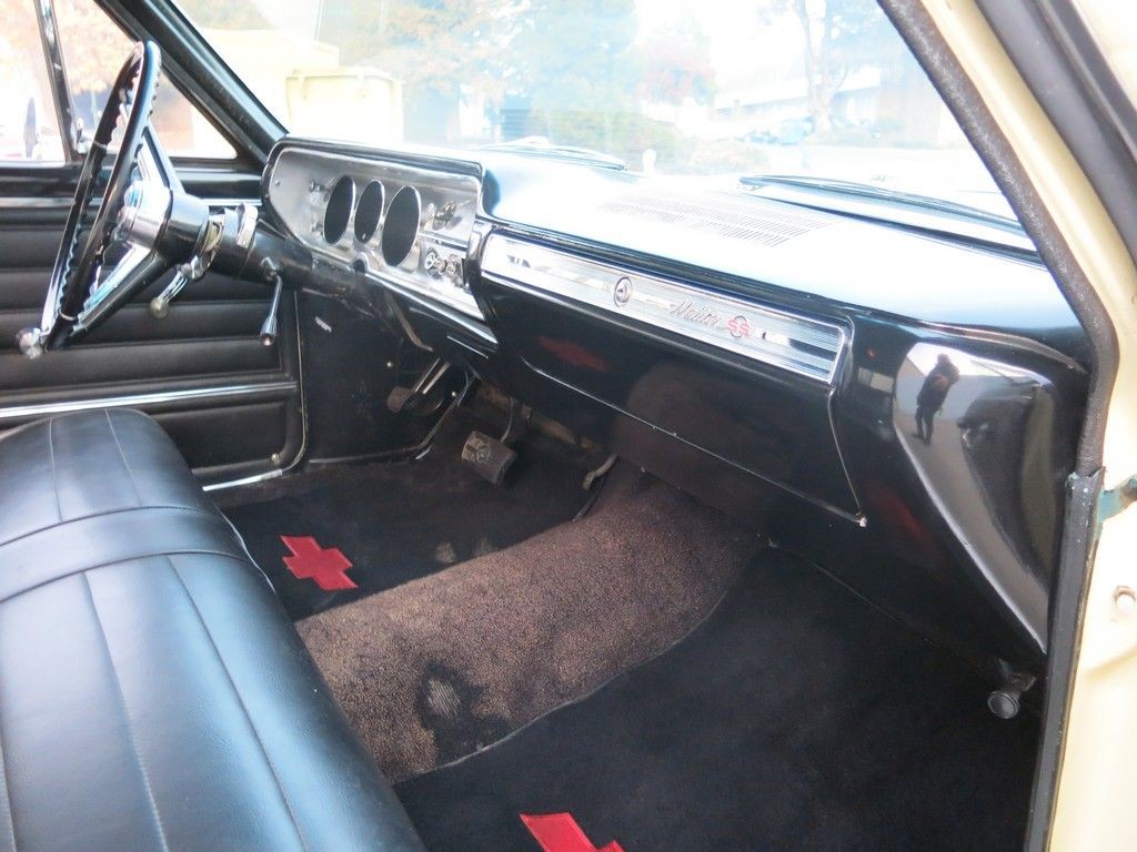 The seller’s 1965 Malibu appears to have come with the $162 Super Sport package that was developed a few years earlier for the Impala. That option gave buyers added exterior brightwork with SS emblems and 14-inch full-disc wheel covers from the Impala SS (the seller’s car wears a set of more modern aftermarket wheels). Although this car has a bench seat, other features of the SS were vinyl bucket seats with a floor console and a four-gauge cluster in place of engine warning lights.