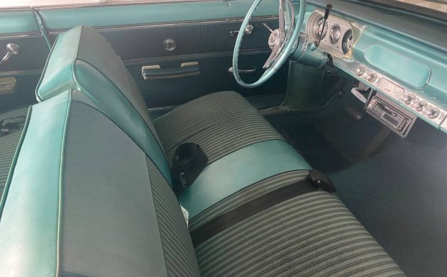 This Nova’s interior presentation doesn’t reach the lofty standard set by the exterior, but it won’t take much money or effort to get there. It is undeniably tidy and serviceable, and hiding its few flaws could be as easy as installing a set of slipcovers to camouflage the seat imperfections. However, I believe that this car deserves better, and I would probably splash around $800 on a complete set of seatcovers in the correct colors and materials as a permanent solution. Otherwise, the remaining upholstered surfaces look great for their age, the paint is crisp, and the wheel is crack-free. The seller installed an aftermarket stereo, which is mounted below the dash. Removal would be easy if the new owner craves authenticity, although it would involve replacing the parcel tray due to the holes that have been cut to accommodate the speakers.