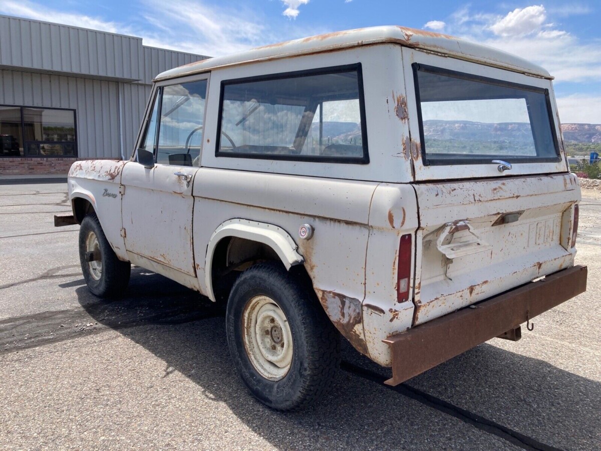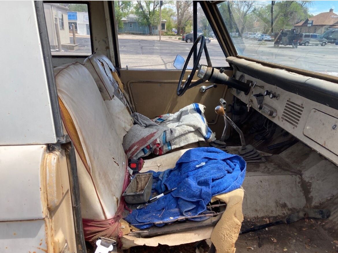 The Bronco’s interior is as tired and shredded as expected, requiring a complete retrim. Kits in the correct colors and materials retail for around $2,000 and will improve the situation considerably. The winning bidder will undoubtedly refresh the painted surfaces during the build, leaving the inside of this classic looking spotless. A previous owner relocated the shifter to the floor, but reversing that won’t cause many headaches. That is the only visible modification, with the vehicle retaining factory items like the AM radio.