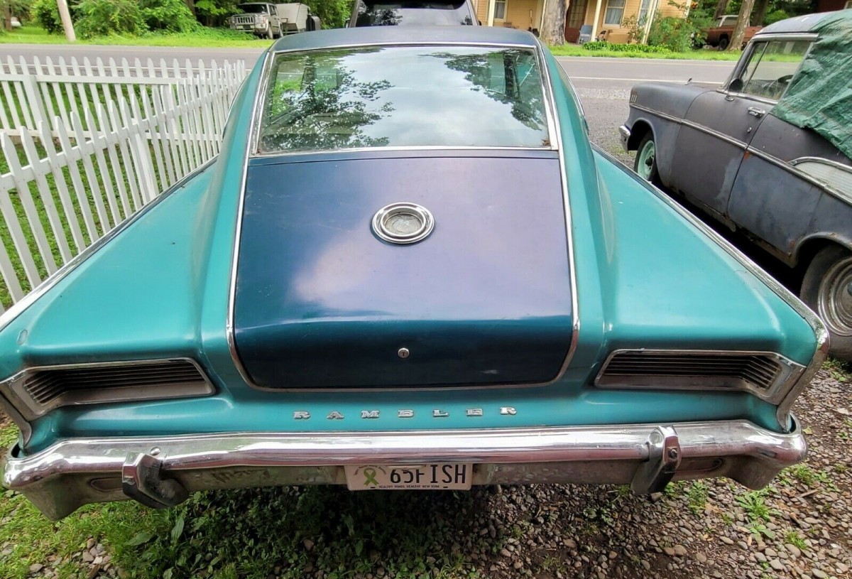 The local car show in my town couple weeks back, was relatively disappointing for a guy like me. Naturally, I was happy to see even a diminished interest, for many reasons, I’m sure. The one car that generated a lot of interest, was a ‘blue ’65 Marlin very similar. It was spotless, and turns out, the gal who was showing it, it was her mothers car she bought brand new.( wheels added later, she said) Our town did have a Rambler/Nash dealer until the 60’s, so it could have been a local car. I asked if I could see the motor, the gal reluctantly said “sure”, I could tell she had no idea, nor anyone standing around the car, knew how to open the hood. They were looking inside, uder the bumper,, I was the big hero,”it’s right here”, pointing to grill. A 327 that wreaked of gas. It was the only car I took a picture of.