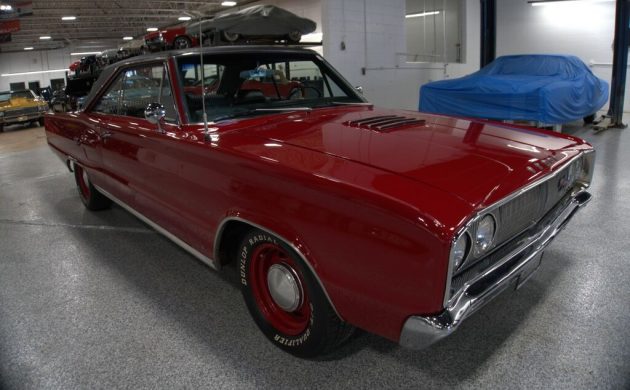 Chrysler was a major player in the 1960s muscle car scene, releasing the R/T variant of its Fifth Generation Dodge Coronet range in 1967. The seller states that this first-year example underwent a restoration in 2023 and has covered no miles since. The process included a repaint in Bright Red, although it is unclear whether this is the car’s original shade. It presents extremely well, with no visible paint or panel issues. However, the seller indicates that there are small rips in the Black vinyl top. Attending to these promptly would be wise before they can become a rust trap. The car retains its distinctive R/T badges and hood scoop, but it appears that the first owner may have deleted the stripes that were an integral part of the package. The trim and glass are spotless, and the Coronet rides on color-matched 15″ steel wheels with dog dish hubcaps.