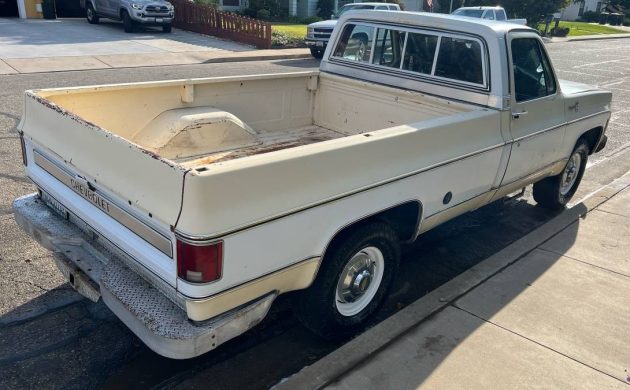 This C20 is in okay shape overall. With at least 90,000 miles (the odometer is broken), the original engine is gone, having been replaced with a similar 454 cubic inch V8, the largest then available, and it was rebuilt in 2023. It was upgraded to deliver gasoline via fuel injection rather than carburetion. Paperwork for all of this work has been retained for the buyer.