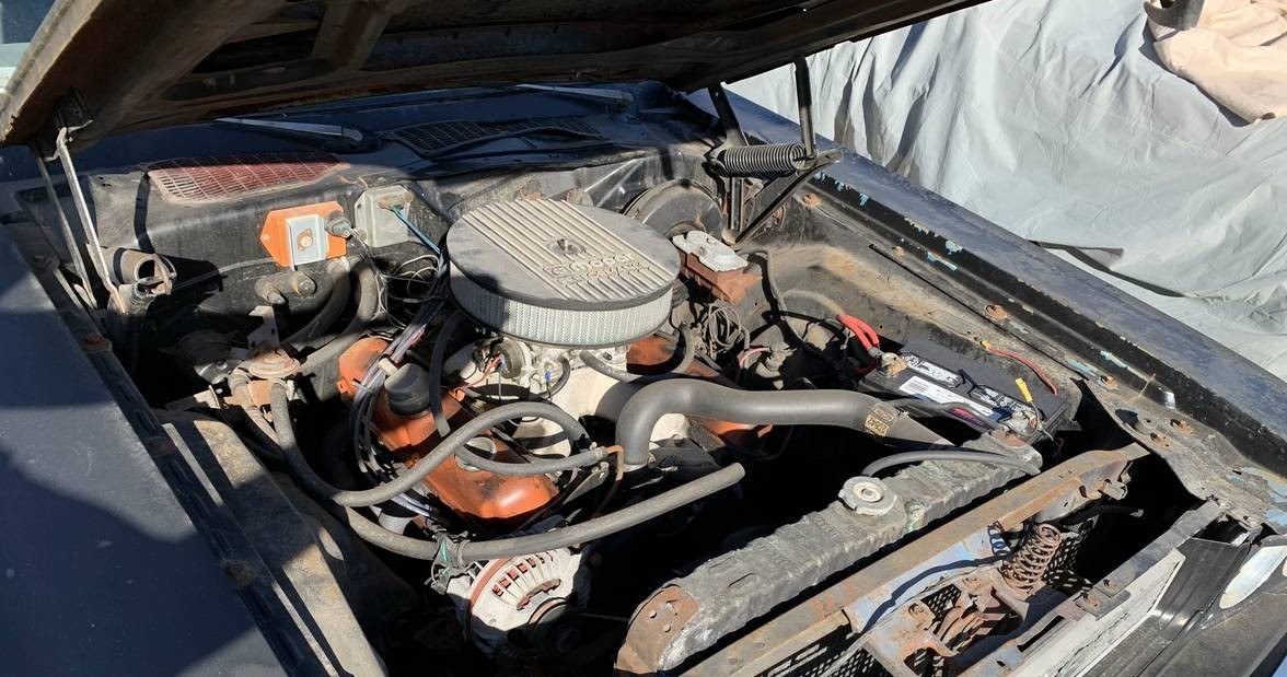 Some upgrades have been made to the hardware of the car, including an Edelbrock 850 4-barrel carburetor and headers with three-inch Flow Master exhaust pipes. The odometer reading is 30,000, but it’s broken so it sounds as though the device has turned over at least once. The photos provided are few, but we don’t see any issues with the body other than a well-used flat black paint job. The seller says the interior is good and the single photo provided tends to support that.