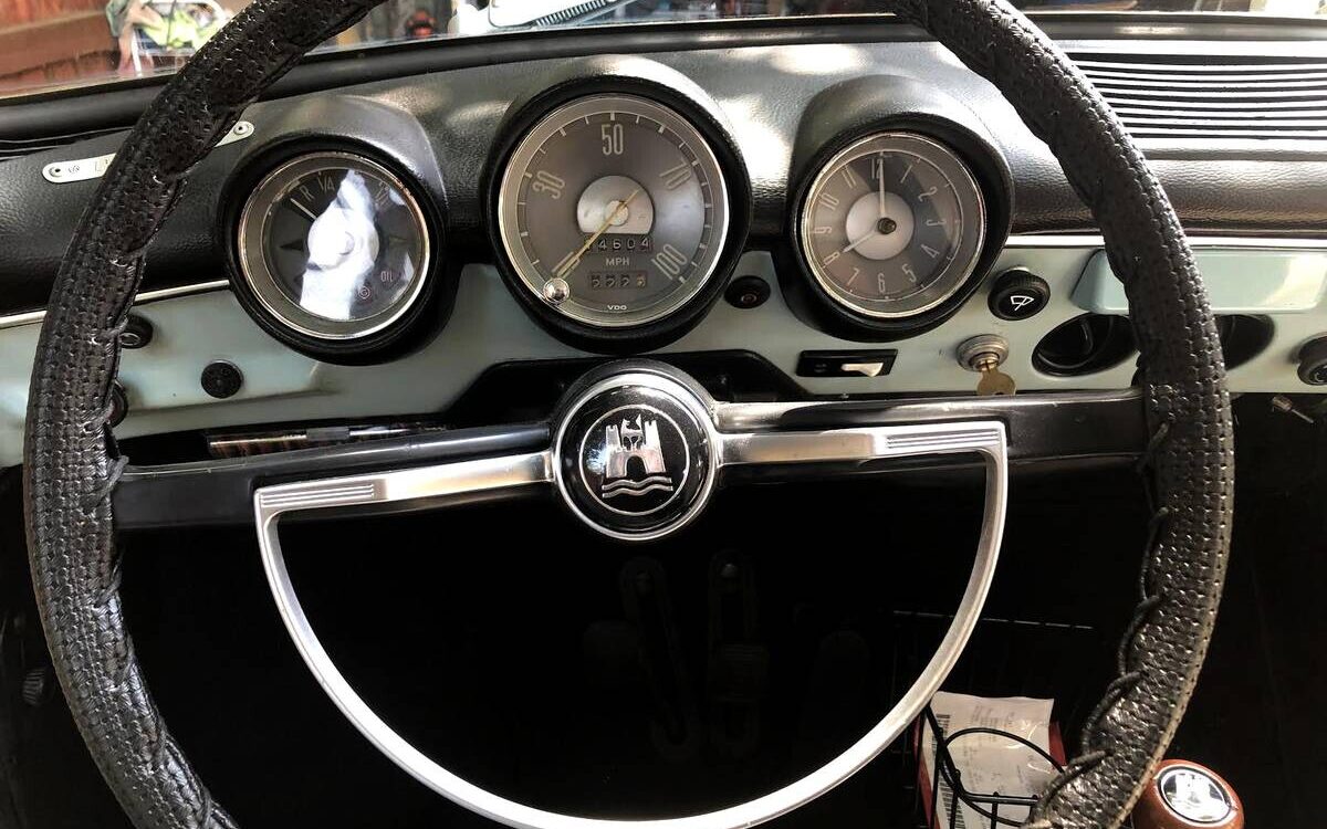 According to Hemmings, this Type III should be powered by a fuel-injected (starting in ’68) 1600 CC, flat-four cylinder engine but what I’m seeing looks like a dual carburetor fed motor. There was such a set-up used but it was a 65 HP 1500 CC powerplant so I’m not sure what’s going on here. The seller claims that the engine has been rebuilt so maybe a modification or two has occurred. The seller is mum on engine specifics but does say, “Runs great, fun to drive!“. A four-speed manual transaxle makes the rear-wheel hookup.
