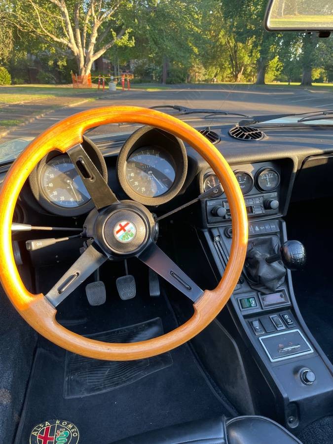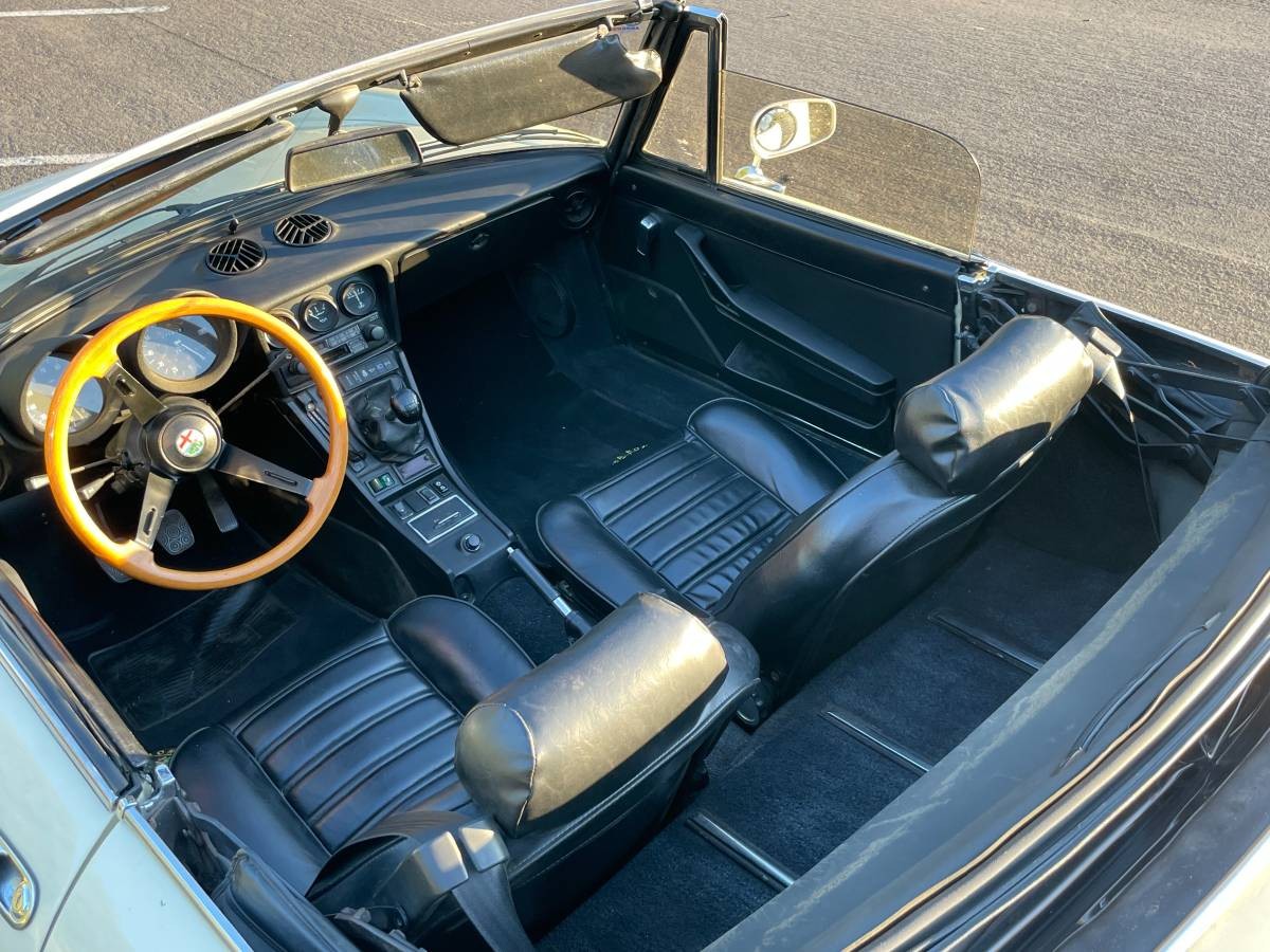 The owner supplies no engine photos, but it appears that what is happening below the hood is nothing but good news. The Alfa features a 1,962cc 4-cylinder engine that is backed by a 5-speed manual transmission. With 111hp on tap, the Spider is not the fastest car on the planet. However, its ¼-mile ET of 17.6 seconds is still not that bad. This is especially true when you consider how close the vehicle occupants are sitting to Planet Earth. That figure would feel considerably faster, as would the top speed of 109 mph. This Alfa has led a charmed life because the owner has recently treated its motor to a complete rebuild. He holds receipts to verify this, along with plenty of service records. He says that the car runs and drives well and features a relatively new clutch and slave cylinder.