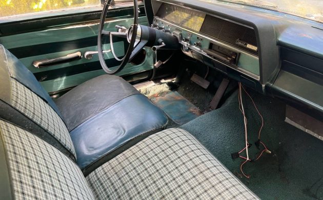 The body on this AMC is said to be straight with no rust and the blueish green (or greenish blue) paint may be okay, at least for running around town. The upholstery on the front seats are mismatched, but is functional. The seller says he/she has all of the car’s emblems, so we assume some of them have been removed, perhaps in anticipation of new paint. This is said to be a complete car, so if you’re into 1960s Ramblers, here’s your chance to have at it!