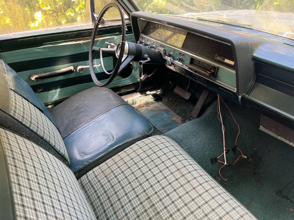 Cool car, but it’s a shame they didn’t take better pictures of it. The grille’s from a ’65 and the dashboard seems to be from a ’65; it would help us identify it with more accuracy if we could see the side trim a little better.