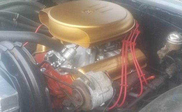 The mileage is enough (95,000) for the 283 cubic inch V8 to have been redone. We’re told that everything under the hood is new, and we assume that includes the automatic transmission (2-speed Powerglide?). The 4-barrel carburetor may be an upgrade, as we assume the 283s all came with 2-barrels. The tires and part of the brakes (unfinished) are new.