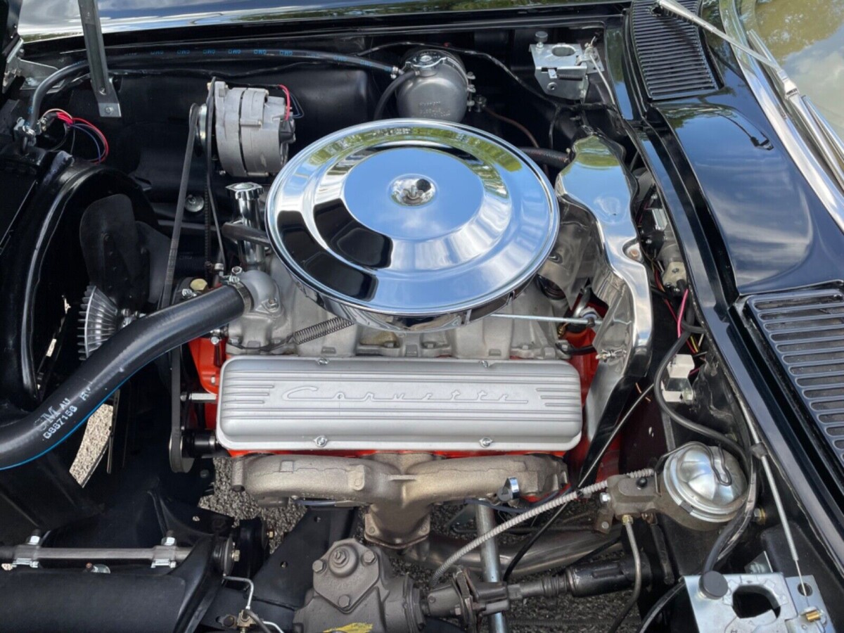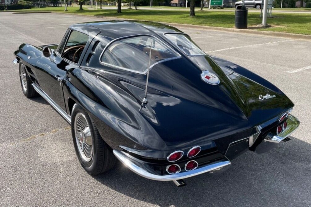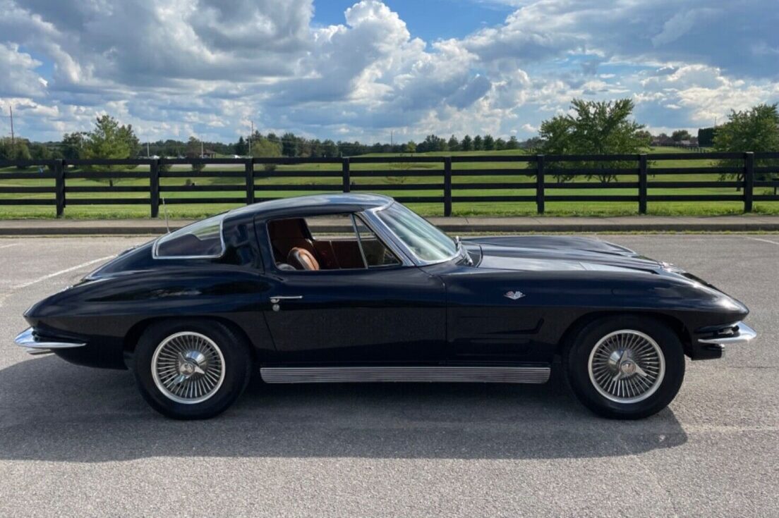 Chevrolet produced 21,513 Corvettes in 1963. Of those, 10594 were the Split Window Coupe variant. The distinctive rear window makes these classics instantly recognizable since it proved a one-year-only design feature. It didn’t prove as popular as the company expected, with some owners complaining about obstructed vision due to the strip of fiberglass running between the two pieces of glass. This feature also led to an industry where some dealers and other companies offered owners the option of cutting away the strip and installing a more conventional single-piece back window. It is unclear how many owners chose that route, but it is safe to assume they later regretted their decision as Split Window values climbed at a mind-boggling rate. This Coupe just came off the back of a meticulous frame-off restoration, and the presentation is genuinely stunning. The seller makes claims about the rarity of Tuxedo Black ’63 Corvettes, but 1963 is a model year where it is hard to confirm specific build totals for some colors. That is the case with this shade, so we rely on the seller’s word. They overlooked no aspect of the car in the build. The shine it exhibits is understandable, considering it wears no less than eight coats of clear. They say it looks a foot deep, which is a fair assessment. It shows no signs of flaws, which is unsurprising because it has only clocked fourteen miles since the seller completed its restoration. The fiberglass is perfect, and the frame is equally impressive. The chrome and glass are in as-new condition, but it is worth noting the aluminum wheels are aftermarket reproductions. If the buyer seeks originality, they should be able to locate the correct wheels and hubcaps to achieve a factory appearance.