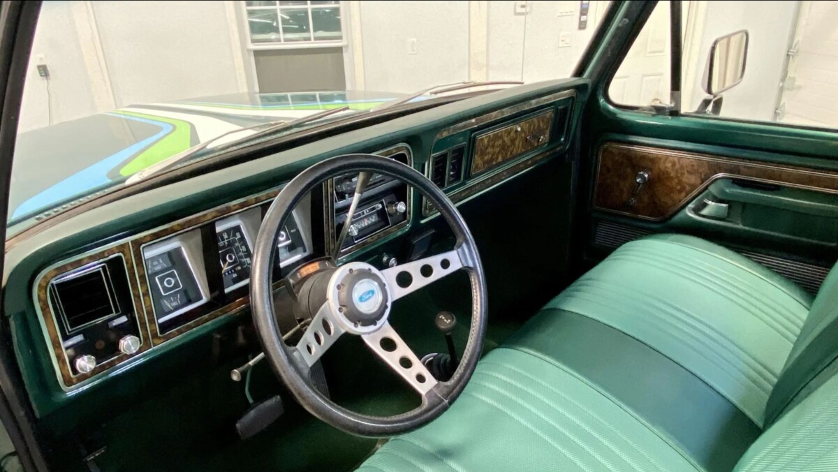 If this Bronco’s exterior presents superbly, its interior continues that theme. Upholstered in two-tone Jade vinyl, there is no evidence of wear or other issues. The meaty sports wheel should feel pleasant in the driver’s hands, while an AM/FM radio and air conditioning should make life on the move pleasant. The owner indicates there are seatbelts to cater to six occupants, making it an ideal family carrier. The dash is impressive, there are no pad cracks, and the faux woodgrain is excellent. It wouldn’t matter where the buyer took this Bronco, the interior should receive positive comments.