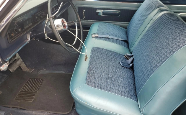 The original owner selected factory air conditioning, and we assume it functions as it should. The seller has found no rust on the vehicle, and the blue interior looks as tidy as the black paint. However, one of the photos shows what may be a bend in the rear bumper on the passenger side that other pics do not depict. We’re told the car is for sale because the seller doesn’t have a garage where the car can live in when not running around. Hopefully, the buyer won’t try to turn this into a muscle machine by yanking the small block in favor of something like a 440.
