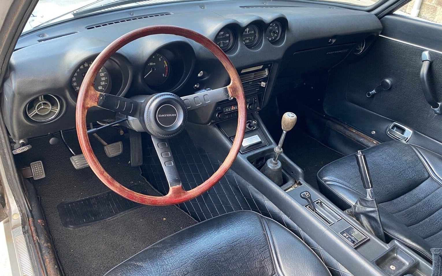 Low-slung door handles and bucket seats skimming your posterior inches above the road punctuate the sporty nature of the original Z car. Fully embracing Pony Car styling, this Japanese pony (long hood, short deck, front-engine, rear-drive) could be described as an Asian Corvette with its two-seat driver-centric cockpit. Neither driver nor passenger will forget they’re in a sports car here. Born with an automatic transmission, this one recently changed to an original-style four-speed, a deviation from stock that few Z-car shoppers will lament.