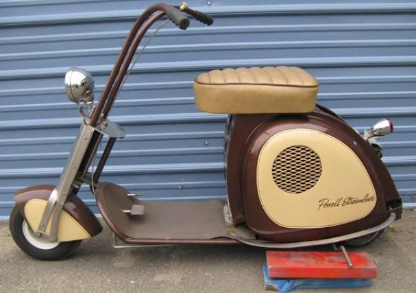 My grandfather used to take me to sportsman’s shows at the Pan Pacific Auditorium in Los Angeles in the 50s and there was always one of these on display. I always thought the tube in the fender a great idea. I remember seeing a few on the road.
