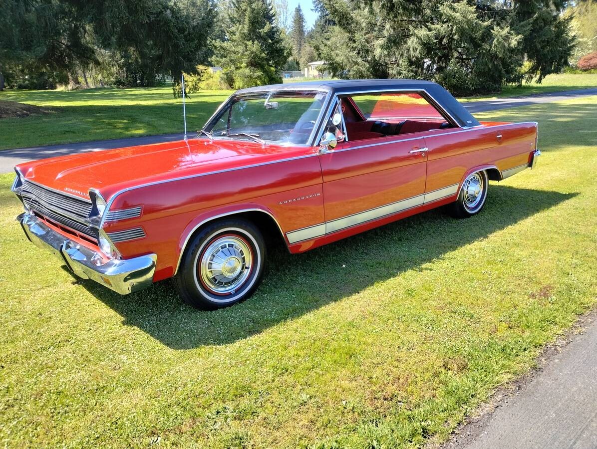 Dick Teague, the principal designer for American Motors Corporation, deserves more credit for creating stylish automobiles on a shoestring budget. Here’s one of them. The all-new looking Ambassador 880 and 990 series was redesigned for 1965 with stacked quad headlights, vertical taillights, and a longer, sleeker, chiseled look. It was well received and even praised by Motor Trend magazine who called the new Ambassador a “strikingly handsome automobile.” Changes were minimal in 1966 and this Antigua Red with a black vinyl roof example is indeed “strikingly handsome.” The condition is almost museum quality and the seller shares that it was once a member of the Car Museum in Tacoma, Washington. The photos tell the story here. It’s solid, straight, all there, and in amazing condition for a 58-year-old automobile.