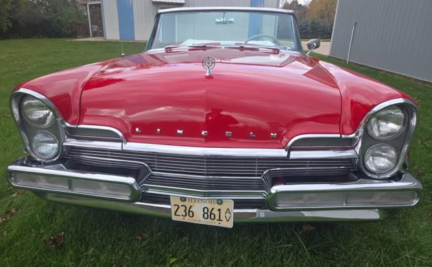 1956 was an award-winning year for Lincoln. Its new longer, lower, sleeker Capri and Premiere models were stunning and made quite a styling statement in the luxury motorcar field that year. Lincoln also made a bit of history by being the first automobile to receive a design award from the prestigious Industrial Designers Institute of New York. But what a difference a year made back in 1956. Lincolns received a facelift for 1957 that reflected the Sputnik era with space-age styling cues and a more assertive vibe overall. Of the scant 3,676 Premiere convertibles built for 1957, here’s one that was treated to a frame-off restoration in 2012 and still looks terrific. It is located in Wonder Lake, Illinois, and is for sale here on Facebook Marketplace for $49,000. Thanks to super-spotter T. J. for sending this rare Lincoln drop top our way.