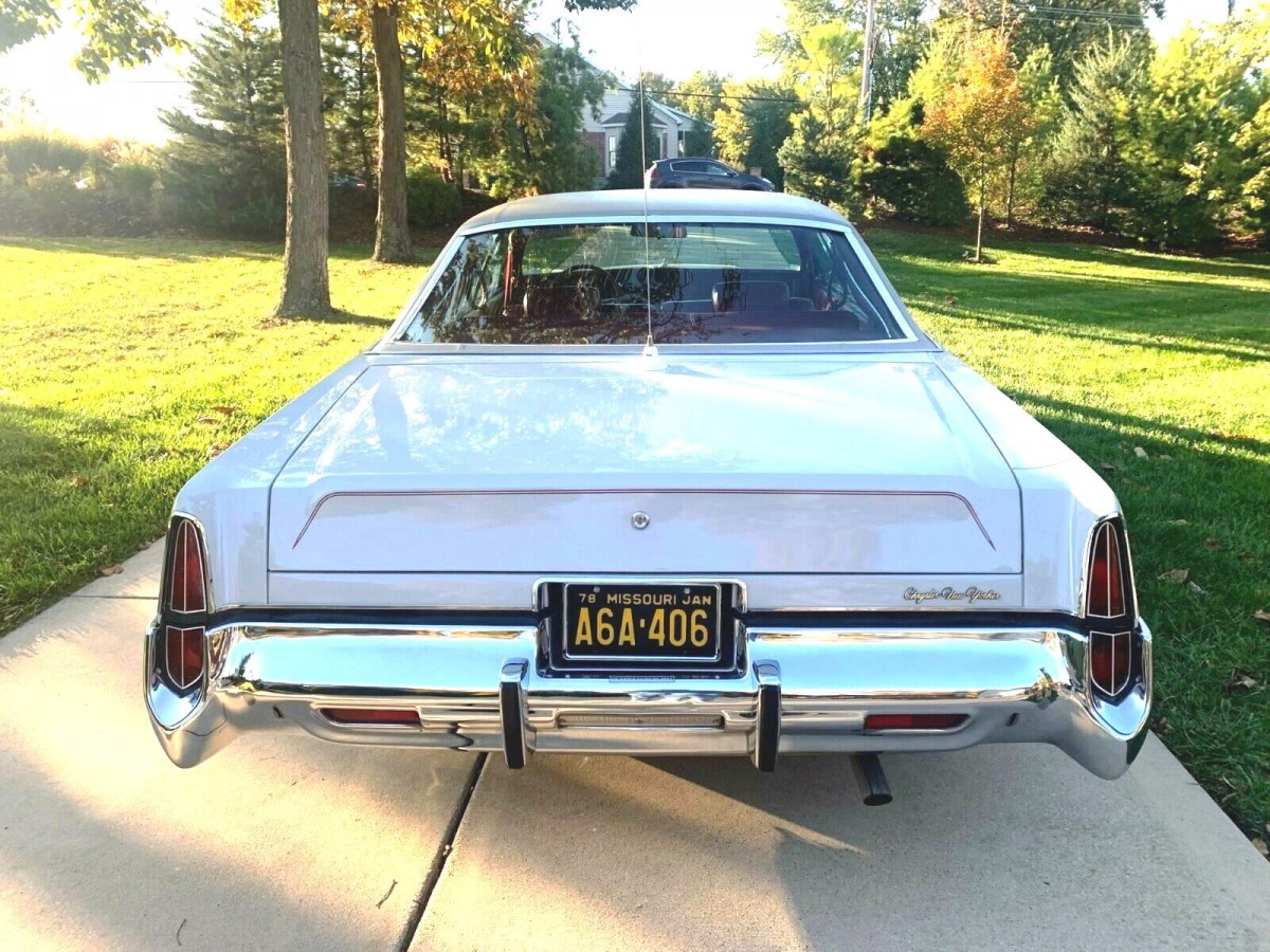 The elegant tail lights recall the previous generation Imperial. Dove gray paint gleams along with the chrome. Fresh tires have covered only five miles, according to the seller. As long as collectors typically prefer the pre-smog classics, these later ’70s rollers will remain a bargain.