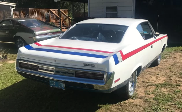 Go ahead and laugh, but at least we (AMC) listened to what people wanted. 1st of all, going fast was patriotic, AMERICAN Motors celebrated that with these cars. Okay, it wasn’t your stinkin’ “Hemi Cuda”, but this car put “regular ‘Cudas to shame. 2nd, in true AMC fashion, make it go, keep it cheap. The 1970 Machine cost about $3500 new, about the same as a 383 Cuda, or 390 Mustang, and I bet could beat both, the 390 was an awesome motor. Unlike the SC/Rambler that had 2 paint schemes, I believe the Machine only had this or regular colors. At the reunion years ago, I was surprised to see more Machines regular colors than these.