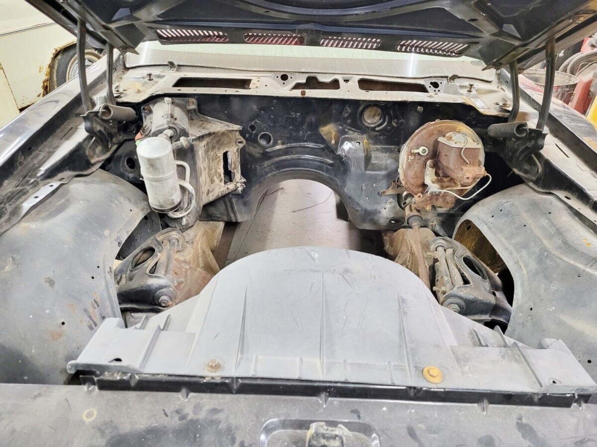 The engine and transmission have been removed from the car and are included in the sale. The seller states that the block is a numbers matching 400 cubic inch V8. The Pontiac Formula could be ordered with a 350 cubic inch V8, a 400 cubic inch V8, a Y code 455 cubic inch V8, or the 455 HO engine. Pontiac built 7,802 Formulas in 1971 out of a total production of 53,124 base Firebirds, Esprits, Formulas and Trans Ams. This car will need a complete restoration.
