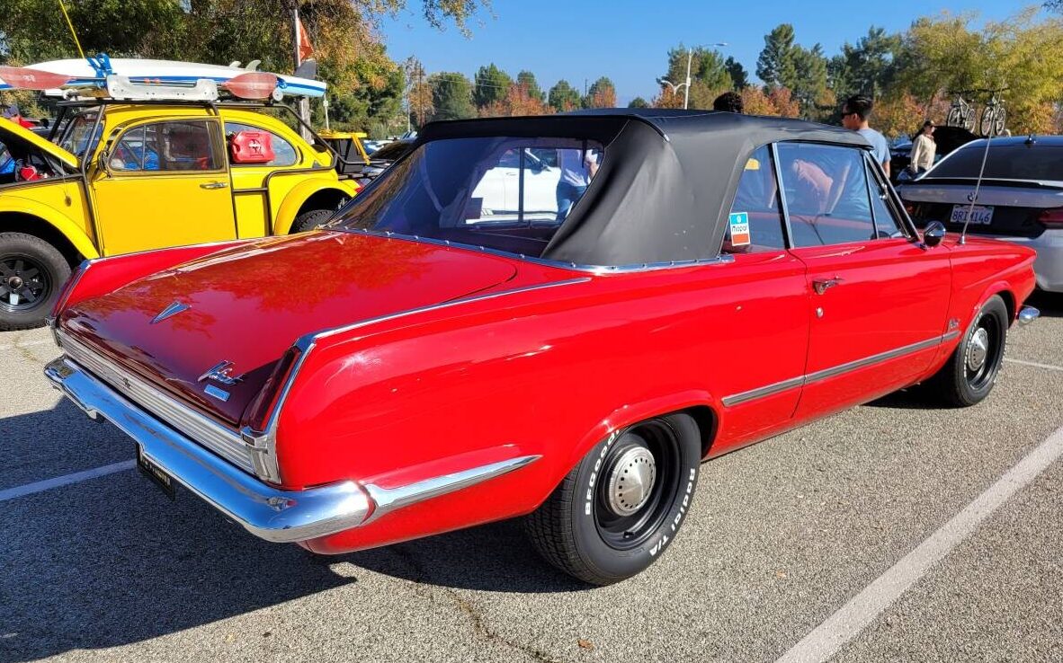 If graded at a high #2 would only be a $16,000 car. White letter tires are later in the 60s’, should have went with whitewalls, and put the trim rings on with the hub caps. I liked it better with the white top, I could see a black top with a black interior. BTW it does not appear to be the Signet model of the 64 Valiant