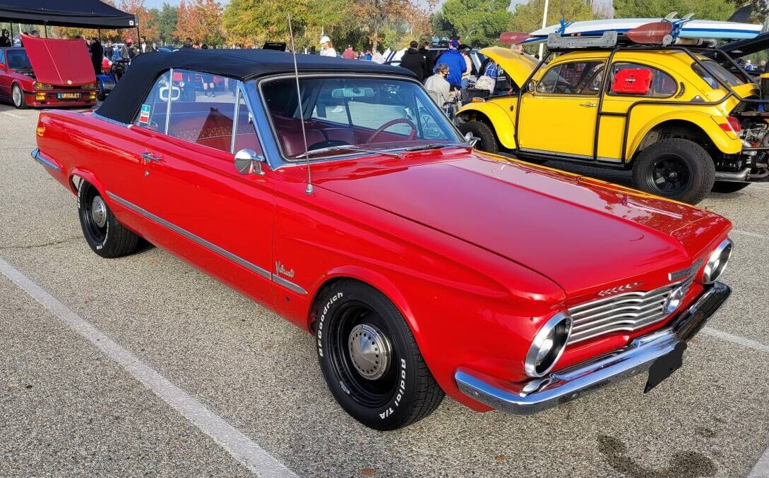 Back in ’72 my brother was looking for a car and I couldn’t talk him into one of these. It was a ’65 white w/ a blue top and interior, 273 auto. on the floor and bucket seats. It was just about perfect w/ only 40,000 on it. Dealer wanted a grand for it. Instead he got a ’67 dart GT with a 273 and auto., it had bad paint and a crusty white interior. The Dart turned out to be real turd, he traded it in on anew Pinto in ’73. All because he was not going to drive a Valiant. They should have badged these as a Barracuda convertible and sold a lot more.