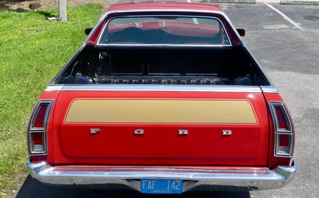The listing suggests that this Ranchero is powered by a 149 net HP, 351 CI “Windsor” V8 engine, attached to a three-speed C4 automatic transmission. I would have thought it to be a 351 M, but I’ll admit that I’m not sharp at spotting Ford V8 differences – let me know what you think it is. The engine compartment is pretty clean and reveals an original and unmodified powerplant. The seller adds, “The current owner states all service has been kept up on this Ford Ranchero GT and it drives smooth with no issues…”