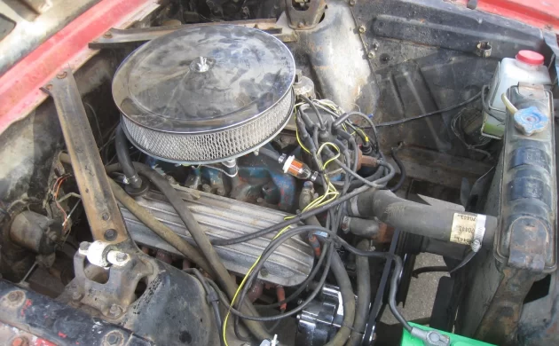 It’s got a C-code engine, a trusty 289. And aside from that, about all you’re going to get from this ad is hot air. The seller mentions about four or five times that the car is worth restoring. Is that so? It’s got a perished paint job. The interior is a mismatch of red (the steering wheel) and black (the upholstery), and beat up at that. There’s no shot in the trunk which would reveal the state of the frame rails. Are you feeling lucky? Maybe you can make the math add up and turn a profit on this car. Or perhaps you should drive it a while. Just don’t open the hood at a cruise night. Before all of that, I’d want to know about the usual places that rust in a Mustang. Aside from the trunk area, that’s the base of the fenders and the leading edge of the doors, where drain holes get plugged.