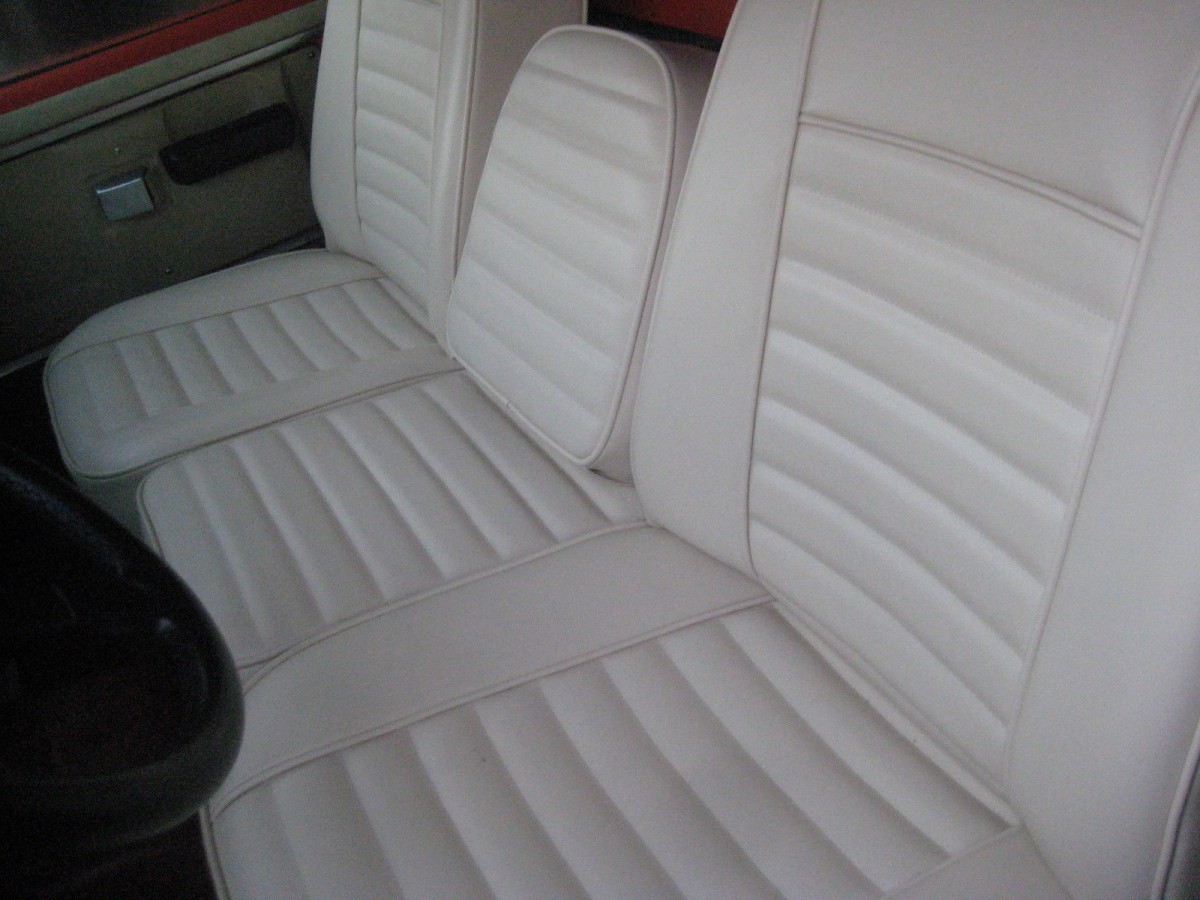 Inside is a stark contrast to the exterior. The seats have been completely and professionally reupholstered right back to factory correct colors. The door panels, dash pad, and sun visors also match the seats. Unfortunately, there is no headliner, but the seller says they do have leftover vinyl from the seats that could be used. They also note that the photos of the dash on the floor are because of cleaning.
