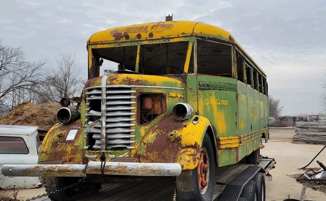 A member of our local truck club has a restored bus like this. Diamond t not sure of year, runs a Isuzu diesel, 5 speed with brownie, air, PS, etc. he goes to ATHS shows across the country pulling a stock Diamond T pickup on a trailer.bus is school bus yellow, the pickup railroad blue. Quite a sight. It runs good, keeps up with traffic. ( John Miles, Bloomfield, NM ) if you need any info on parts, resto, etc. he will be the one to speak to.