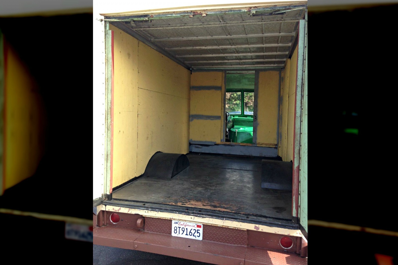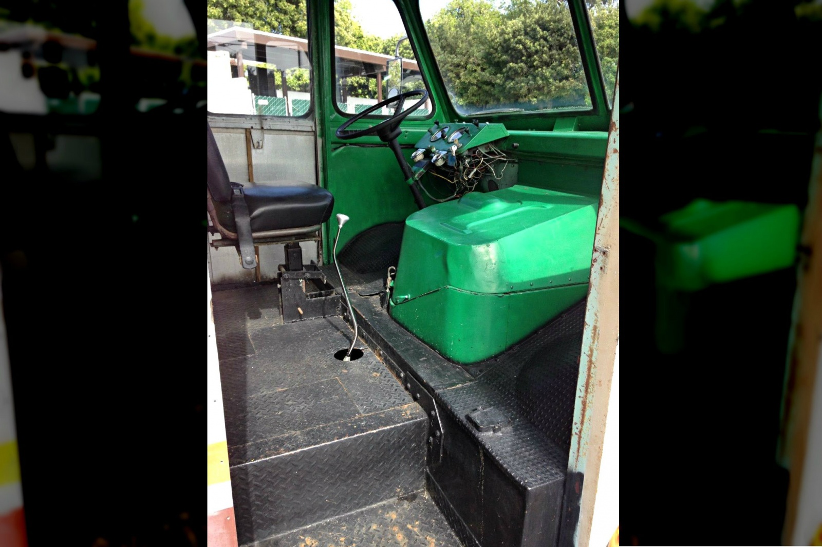 Inside of the box is a large empty space awaiting whatever you may wish to move or permanently place within. The seller mentions the idea of a food truck, which I can certainly envision as food trucks and beer trucks are quite popular. I think this would be a great classic race car hauler with a few spares, a sofa, and a mini fridge to keep your beers chilled for the after race party. Currently there is only seating for one, and the driver window appears to be non-functioning at this time. The interior is simple and could be spruced up based on your needs. The entire interior is solid with no major damage or rust present. Add a few coats of paint in the storage area, and over the flamboyant green to tone down, and “clean up” the interior appearance.