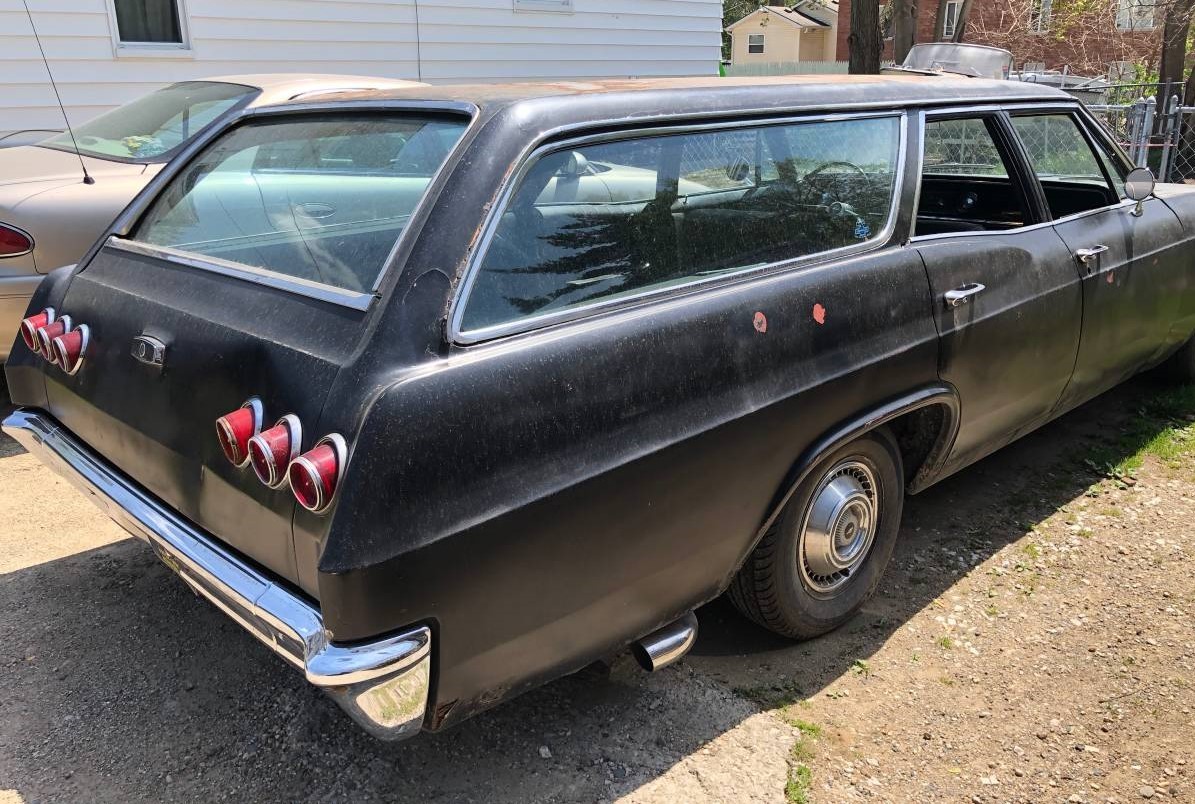 This wagon may have been painted Tuxedo Black when new and has a black vinyl interior. But the paint and color may have been redone and it’s ready for it again, unless you’re into the patina thing, which the roof and hood certainly have plenty of. There may be some rust around the window trim, but no mention is made of it anywhere on the car. Four new tires are touching the ground and the spare is said to be new, as well. We’re told that some parts will come with the deal without identifying what they may be.