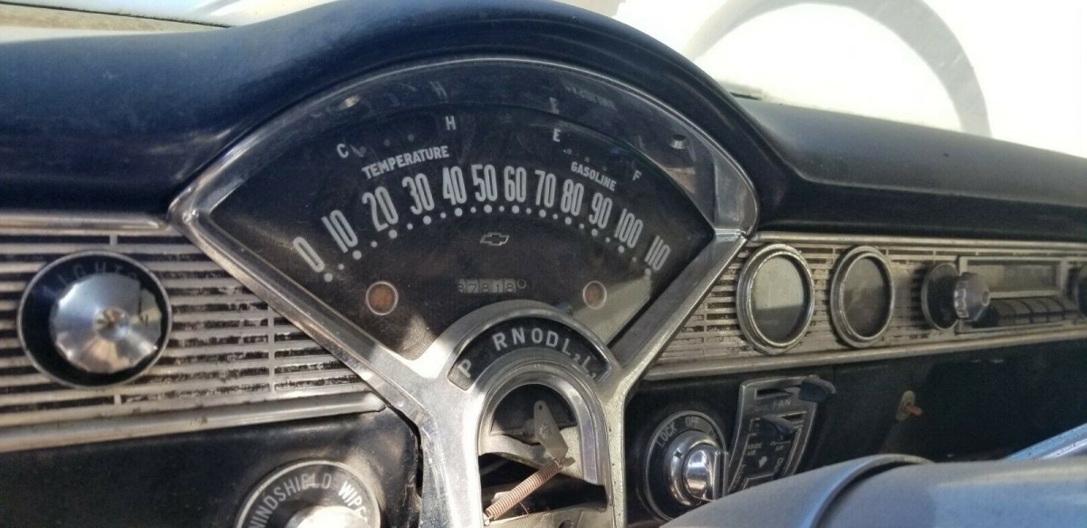 She is a very rough ’56 for the kind of money being asked. I see the tin worm has gotten to the top rear corner as well as floors and other typical area’s. This will be a major project and I would think the seller should show a picture under hood, also a firewall ID plate pic, would tell us more. The back half of car appears to maybe have been Sierra gold and Adobe beige, but the front is a mismatch marriage of part’s. This would tell me it probably was in a front end collision sometime in it’s life. This might be a $10-15k car today’s money, if you can do most work yourself.