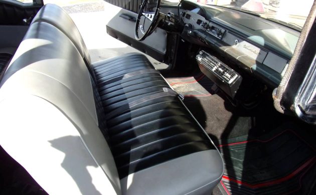 The 1958 Chevies were bigger and heavier than the trimmer 1957 models, yet they sold well enough to regain the #1 sales position over Ford (which they had lost the year before). And they weren’t as over-styled as other GM makes, even though quad headlights had finally made it to the table. Buyers could choose between a 235 cubic inch I-6 and a 283 or 348 CI V8. Because of the budget nature of the Yeoman, it’s likely the seller’s wagon began life with the 235 or 283.